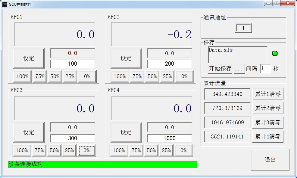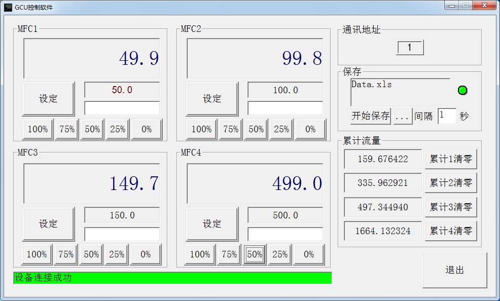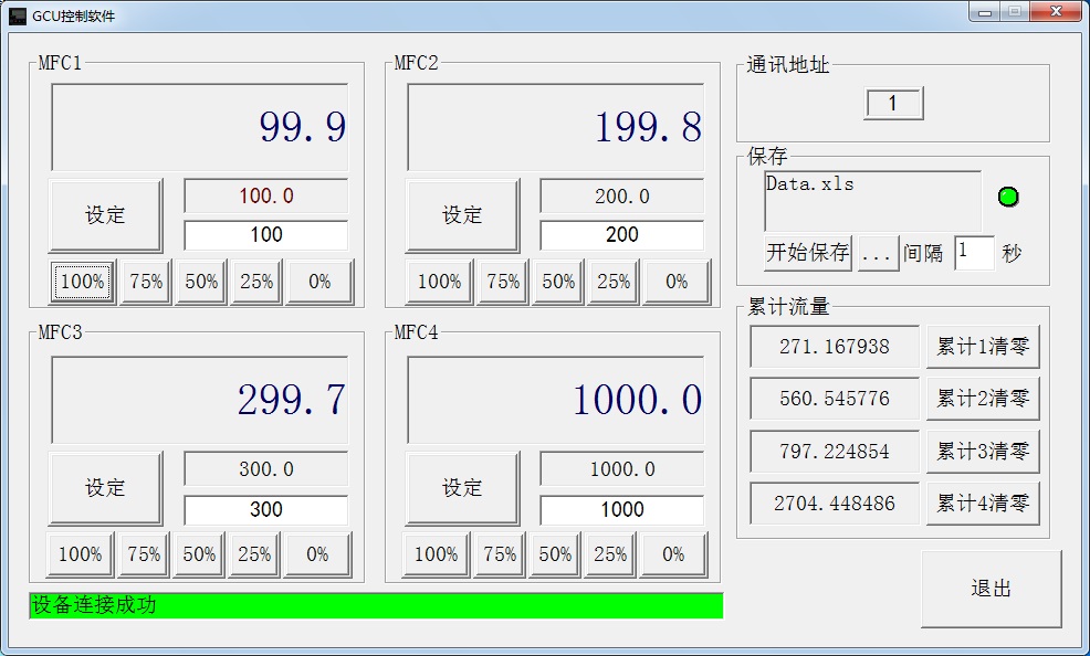 GCU(Gas Control Unit)是2016年底北京曉韜科技有限公司技術(shù)團隊針對高校、研究院、科研型企業(yè)及設備制造商研發(fā)設計的一款專(zhuān)門(mén)用于模擬流量控制器的控制單元。GCU自動(dòng)化程度高、集成度高,適用于多種模擬氣體流量控制器的連接,使用方便,可直接替換各種傳統的多路模擬顯示儀,解決了之前模擬顯示儀功能單一,體積較大,不能夠數字控制的種種問(wèn)題,配套的軟件功能強大,一臺GCU可以同時(shí)控制4臺質(zhì)量流量控制器/流量計,并可以分別實(shí)現流量累積功能,而且用戶(hù)還可以根據需要,將瞬時(shí)流量生成表格導出。目前大量應用于材料、催化、環(huán)境、化學(xué)、物理等相關(guān)科研領(lǐng)域。